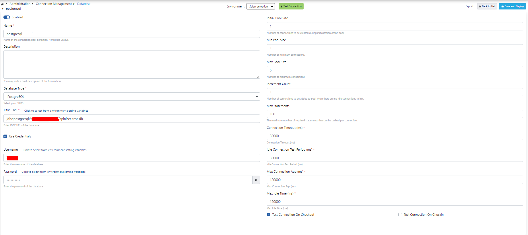Test Connection butonuna tıklanarak test işlemi gerçekleştirilir, Save and Deploy butonuna tıklanarak da işlemler kaydedilir.
