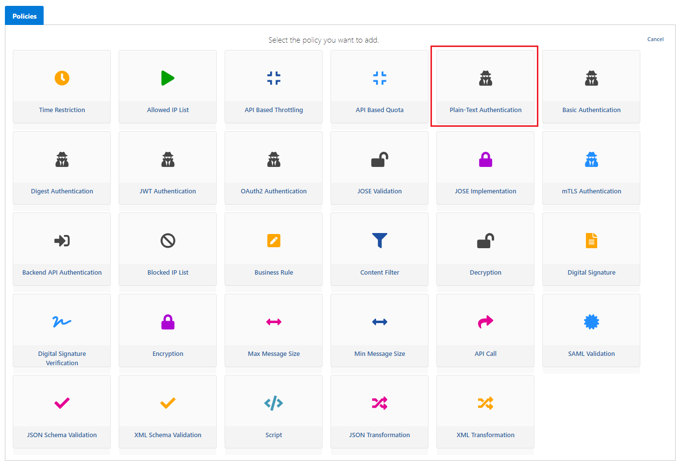 Açılan sayfada Plain-Text Authentication poliçesi seçilir.