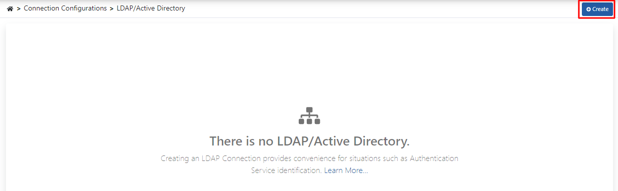 - LDAP/Active Directory bağlantısını oluşturmak için sağ üst köşede yer alan Create butonuna tıklanır.