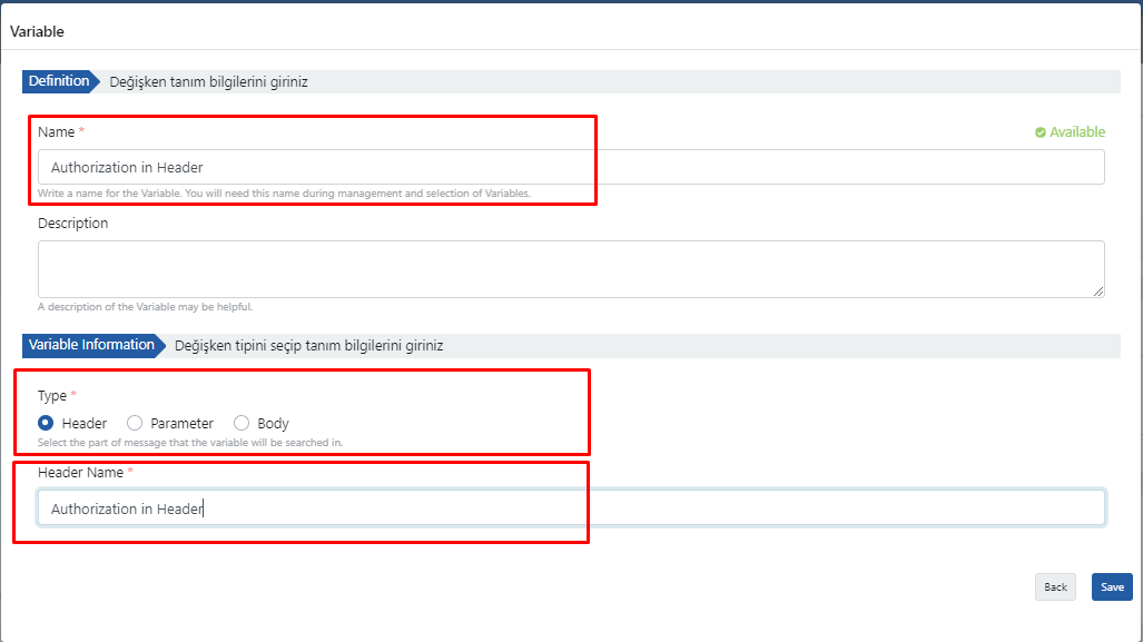 Header Name alanında ise kullanılacak değişkenin Header içerisinde hangi adla isimlendirileceği ifade edilir.