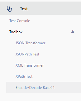 Test menüsü altında yer alan Toolbox menüsü seçilir, burada Base64 şifreleme formatında encode ve decode yapabilecek bir araç bulunmaktadır. Bu araç seçilir.