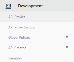 Bunun için Development menüsü altında yer alan API Proxies seçeneğine tıklanır.