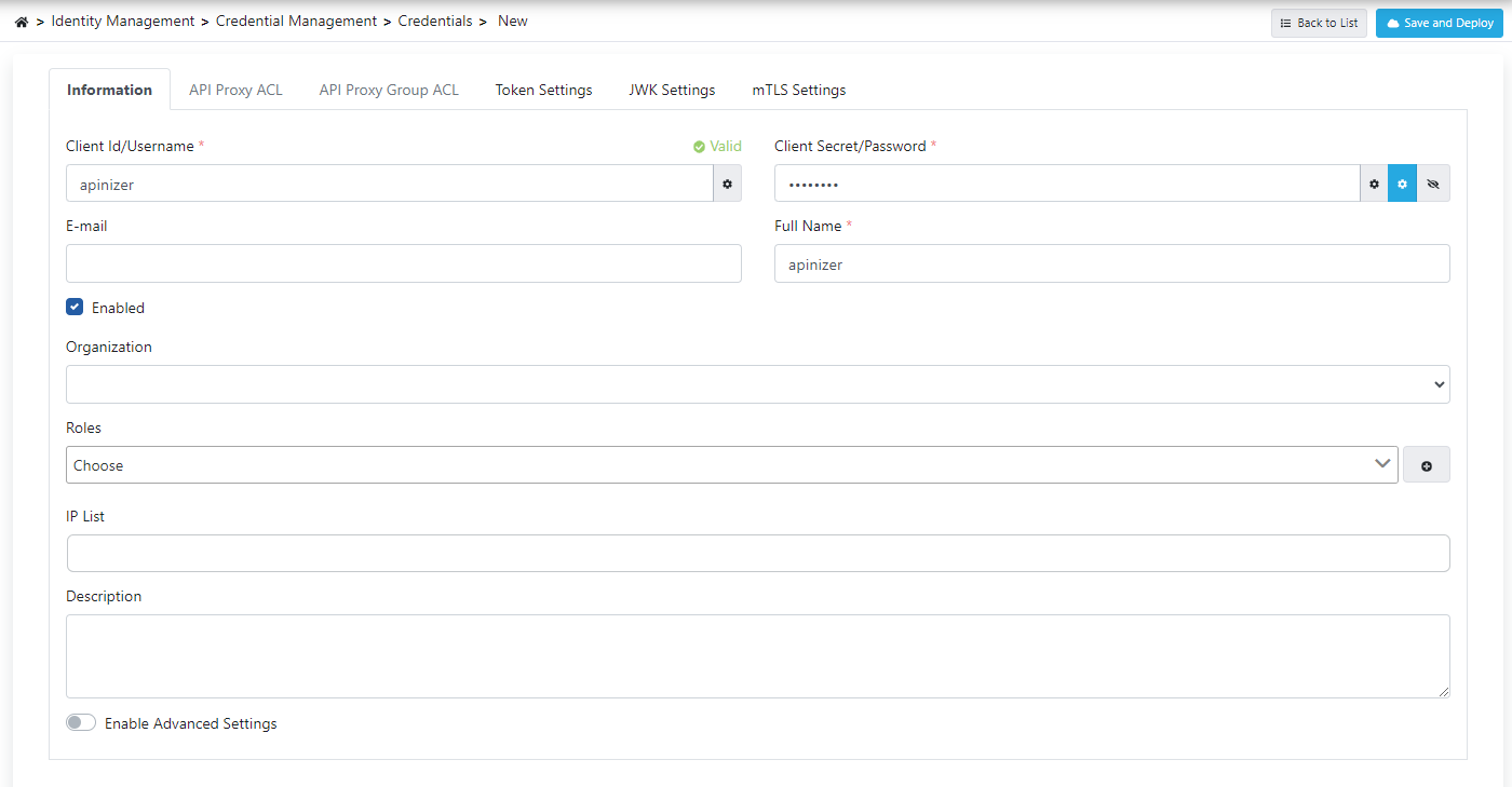 Burada gerekli olan alanlar daha önceden belirtilen bilgilerle doldurulur ve Save and Deploy butonuna tıklayarak oluşturulan credential kaydedilir.