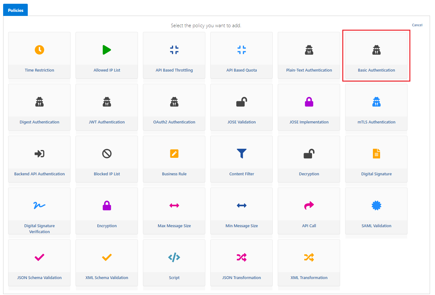 Artık Basic (Base64) Authentication poliçesi eklenebilir duruma gelmiştir.