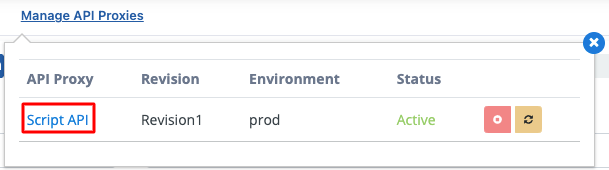 Script-2-API sayfasından API Proxy'nin ismine tıklanarak API Proxy'e gidilir.
