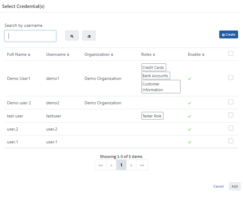 Ekle tuşuna basıldığında proje içerisinde yer alan veya globalde tanımlanmış olan kimlik bilgisi listesi aşağıdaki görseldeki gibi listelenir.