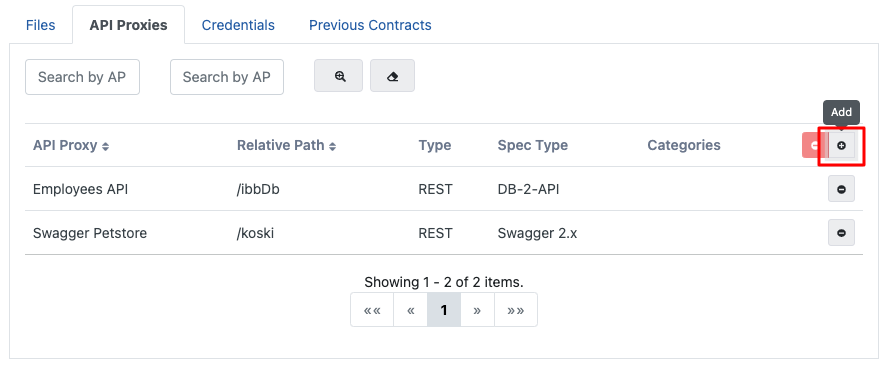 Sözleşme/protokol ile ilişkili API Proxy'lerin , sözleşme/protokol kaydı içerisinde yer alması isteniyorsa, aşağıdaki görselde kırmızı ile işaretli Ekle (Add) tuşuna basılır.