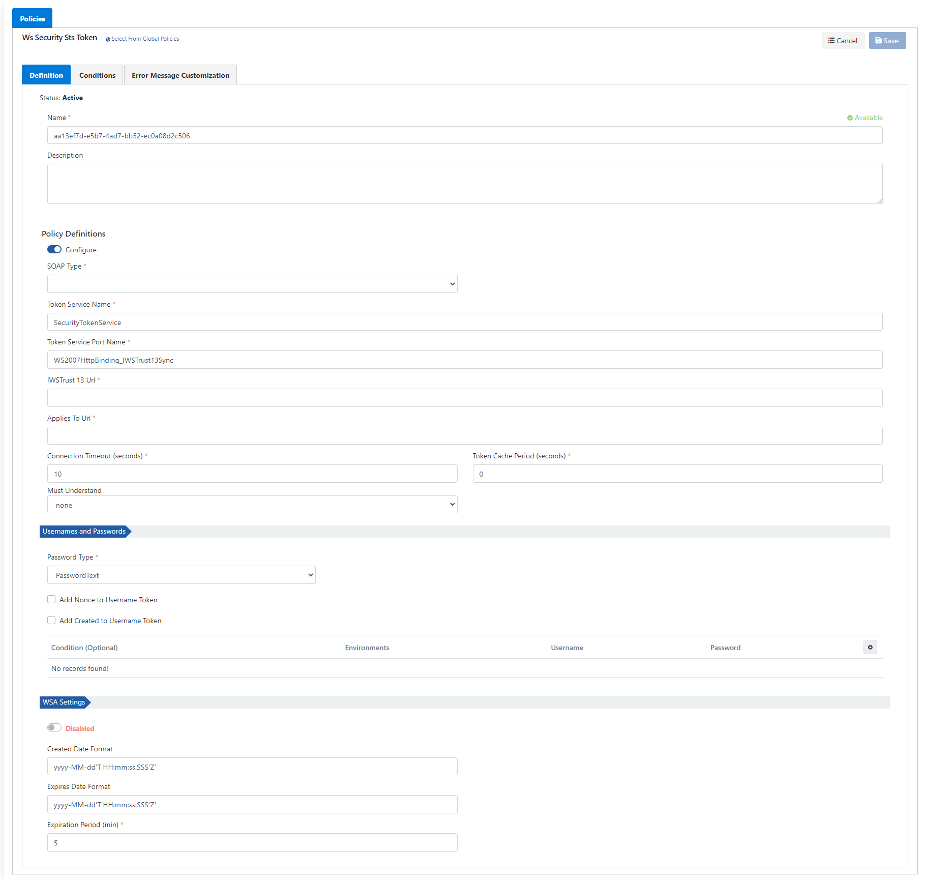 Apinizer üzerinden SOAP tipinde olan backend web servisinin Security Token Servisinden Token alınması ihtiyacı varsa, WS-Security ayarları öncesinde bu politika kullanılmalıdır.