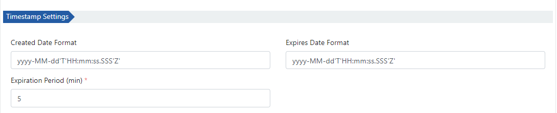 Sona Erme Tarihi Formatı (Expires Date Format) | Zaman alanlarının hangi formatta oluşturulacağını belirtir. Ön tanımlı olarak SOAP Mesajlarında kullanılan zaman formatı kullanılır. Java notasyonu kullanılmalıdır. |