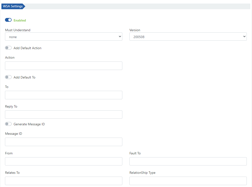 Anlaşılmalı (Must Understand) | Eklenen WSA elementlerinin mustUnderstand attribute değerinin true,false veya none olması için bu alan kullanılır. |