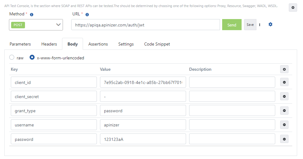 - The values required to obtain tokens are written here and the Send button is clicked.