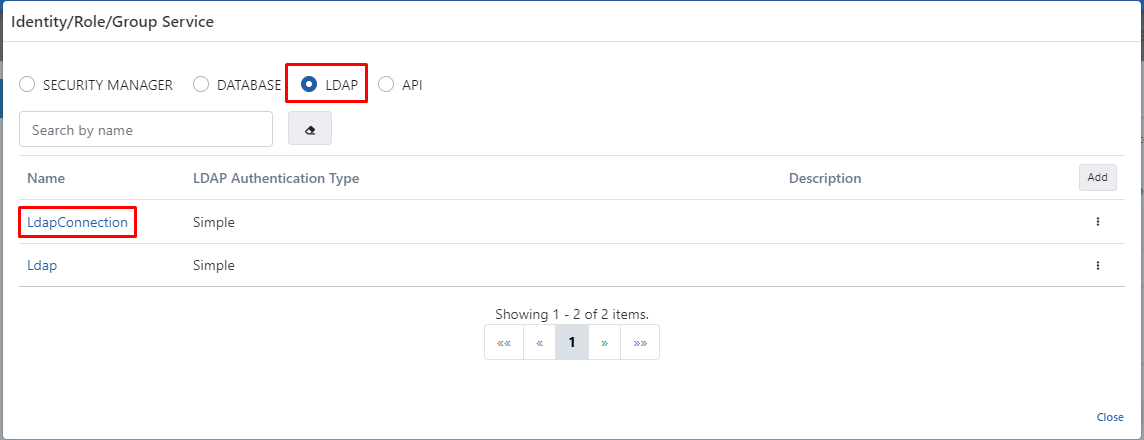 - The value to be selected in the Identity/Role/Group Service field is the LDAP value. Because authentication control will be performed by the structure in LDAP/Active Directory.
