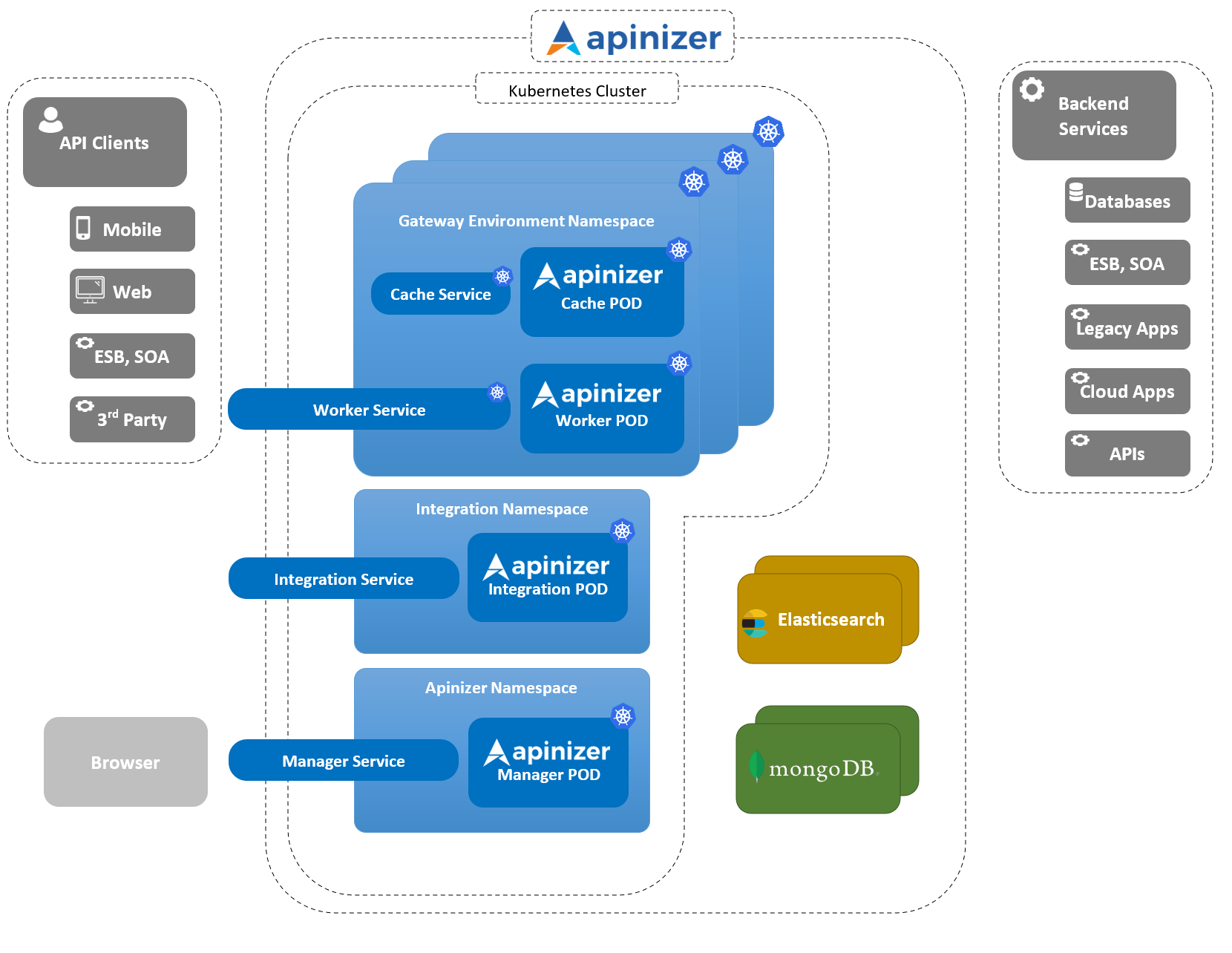 The following image shows Apinizer's deployment on Kubernetes: