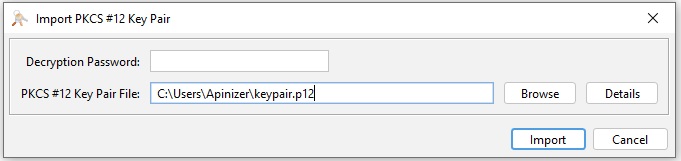 Afterwards, this exported certificate is imported to jks. Optional alias can be entered. Note that if there is a certificate with the same alias, it should not be overwritten.