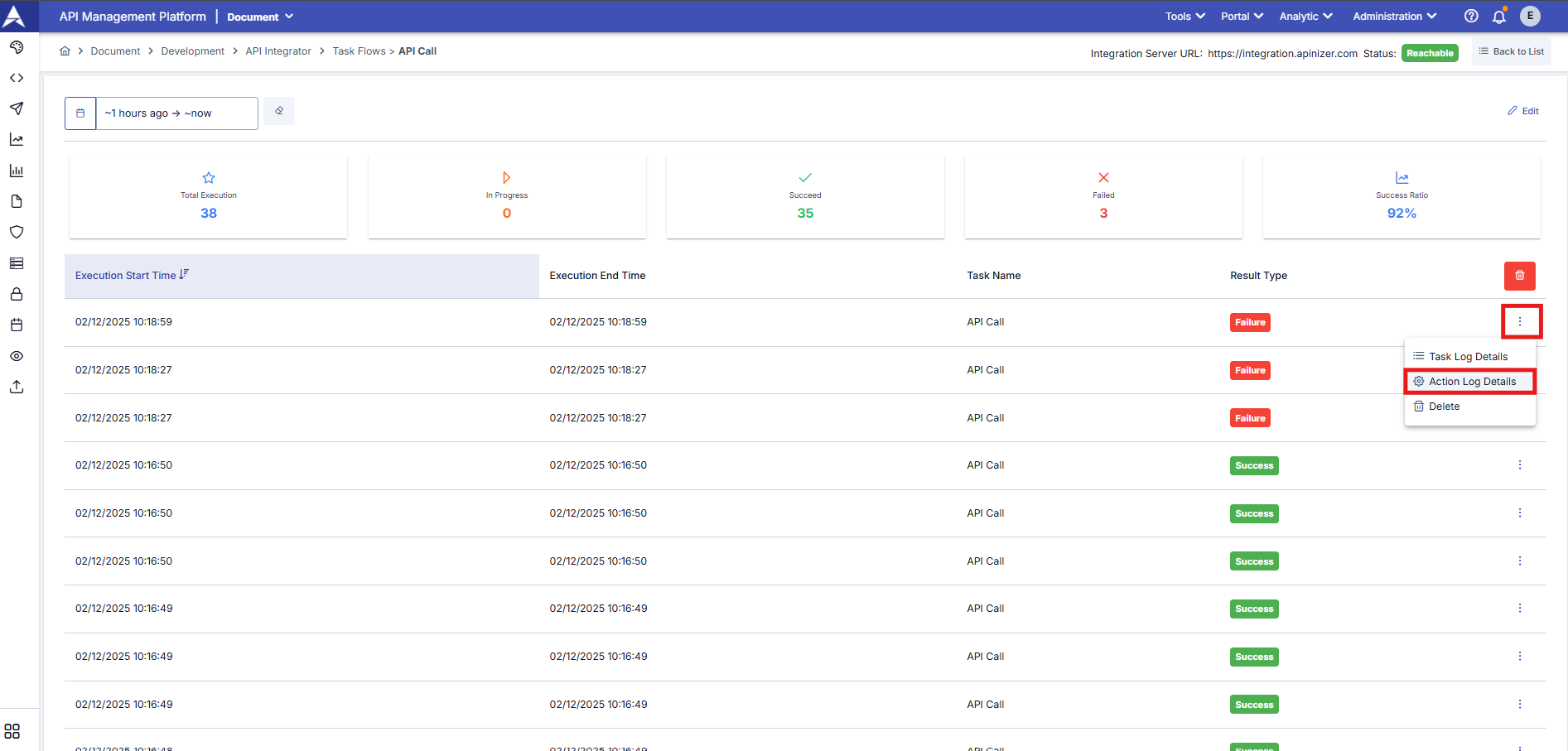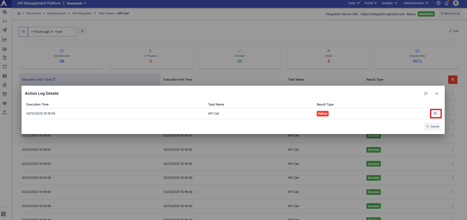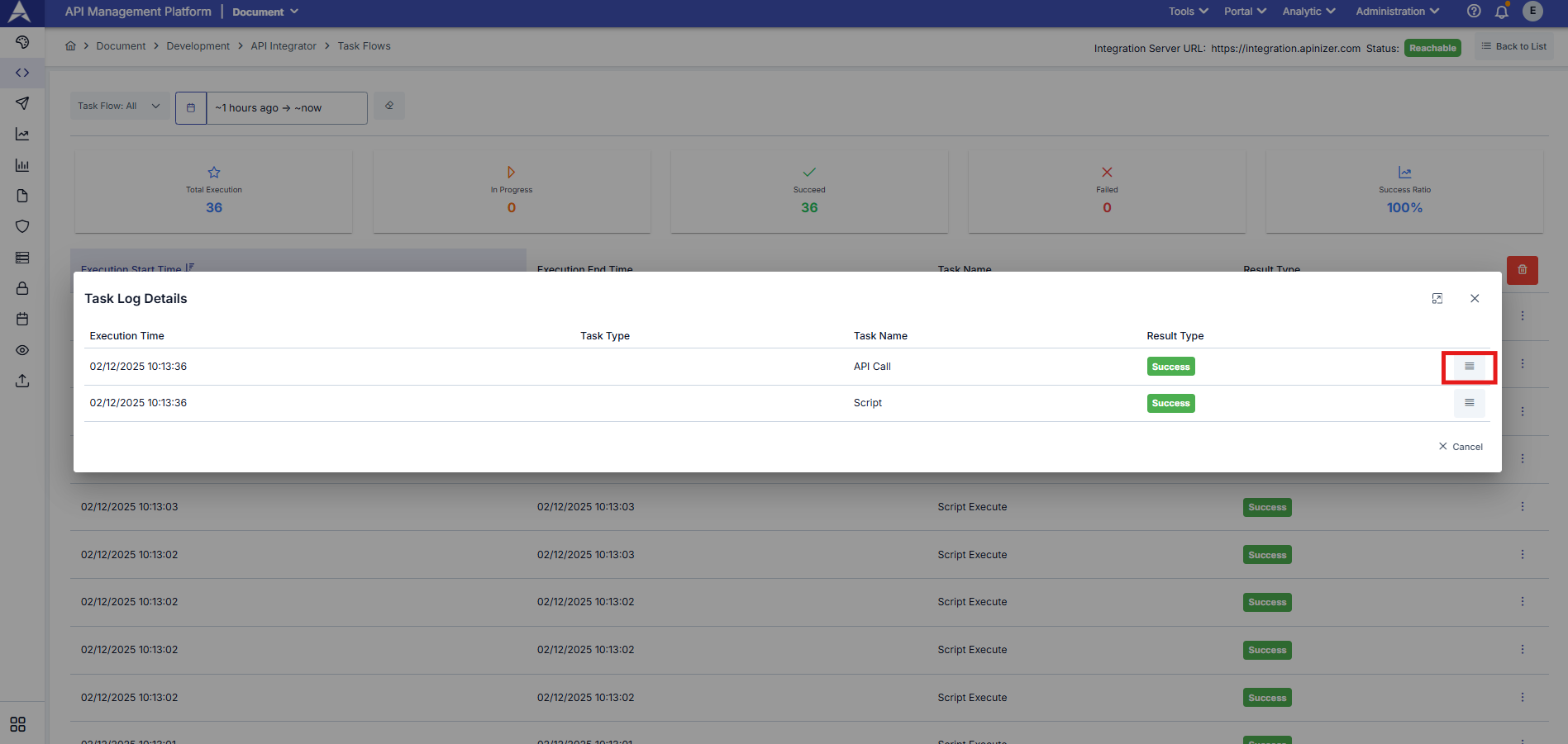 The selected area in the image above takes you to the task details. The image of the dialog showing the log details is below.