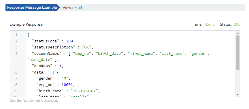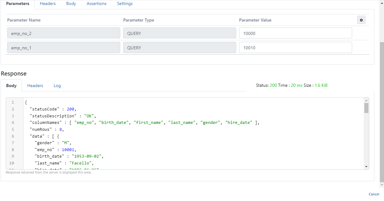 The following successful response is returned when the condition defined in /get endpoint is added to the request and run.