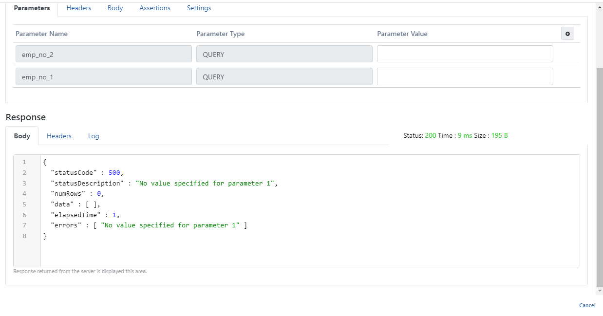 When the condition defined in /get endpoint is sent without adding the request, the following error response is returned.