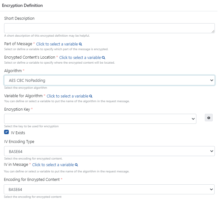 IV in Message | If the IV Exist option is selected, an IV Variable is selected. |