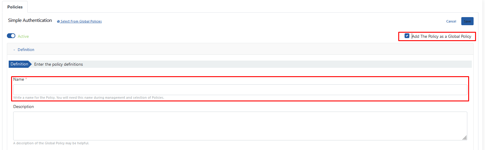 The picture below shows the settings for converting the policy to a global form over the locally set Basic Authentication policy: