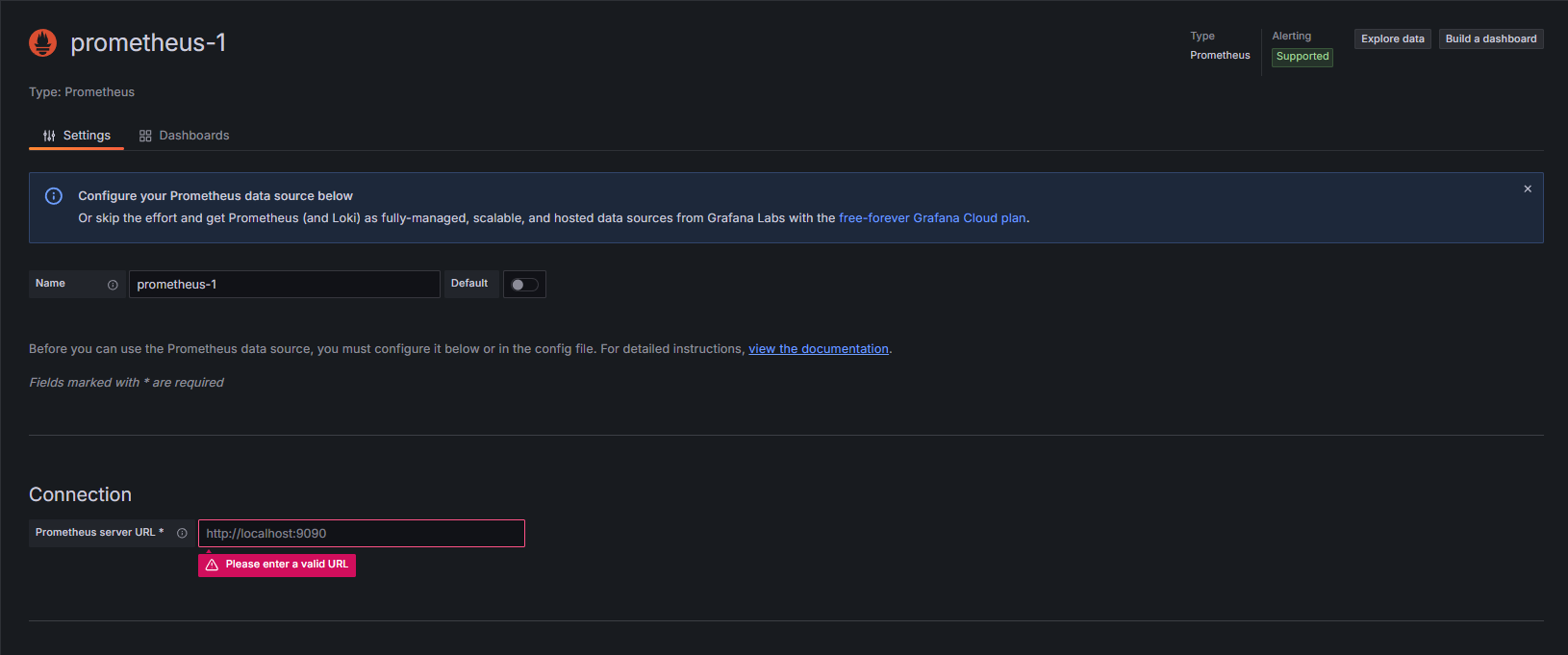 4. Enter and save the Prometheus Connection url and other required settings.