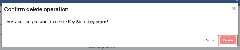 1) To delete an existing Key Store, click the Delete button from the menu of that Key Store.