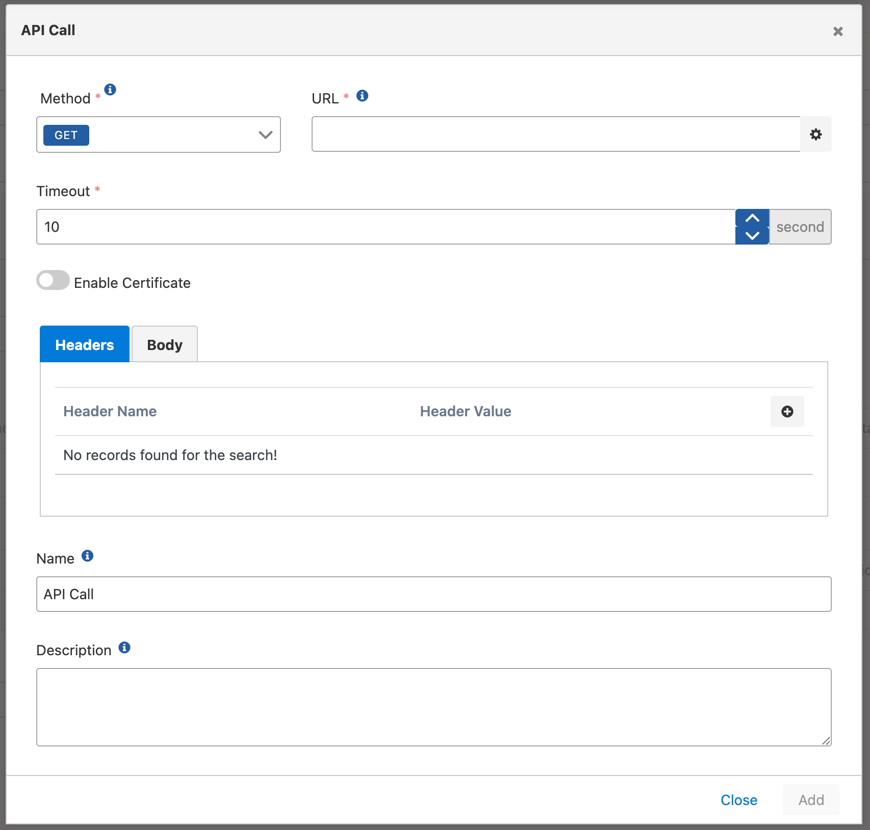 The HTTP method of the endpoint to which the API call will be made is selected. It is mandatory.