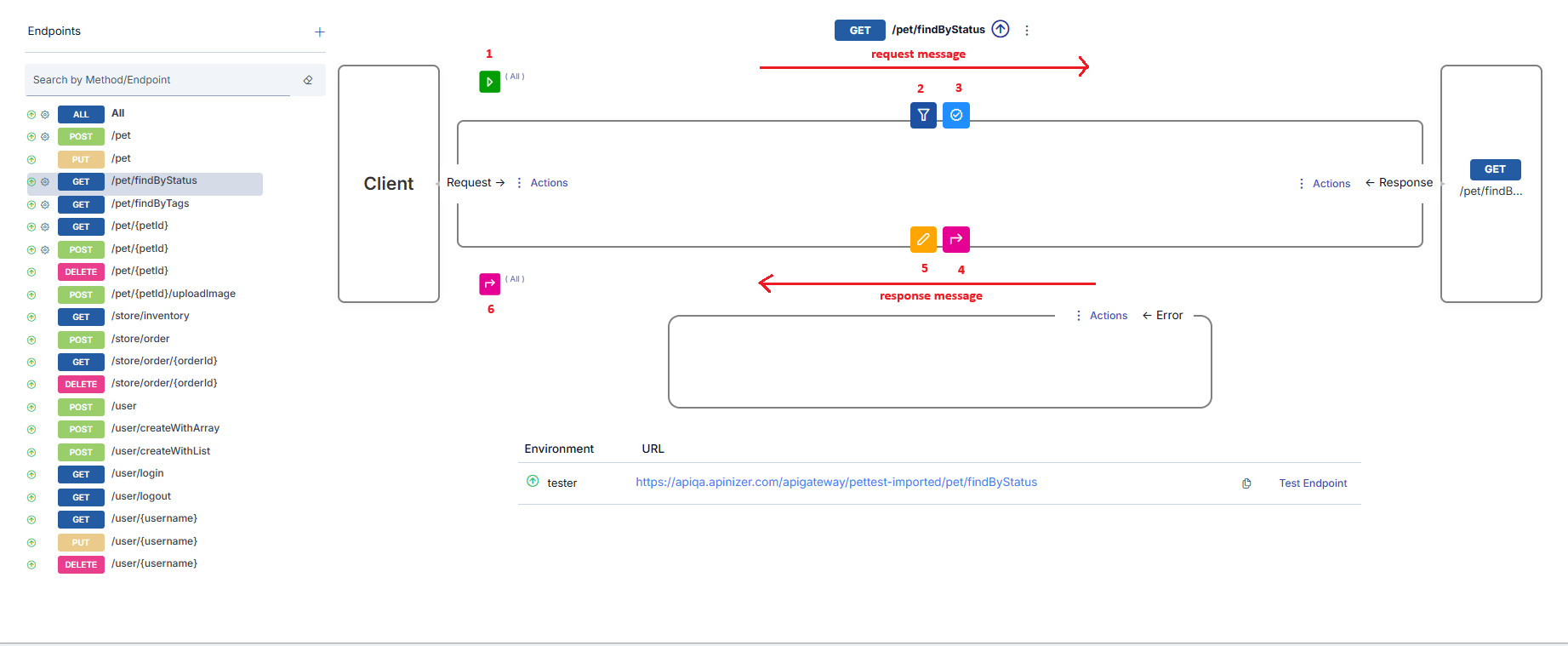 - In the area marked with frame number 2, policies that will be valid for the selected method/endpoint and will be applied to request messages are shown.