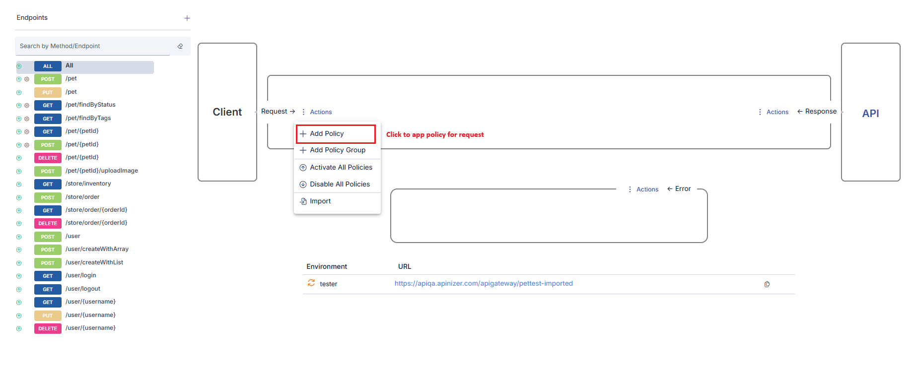 If any policy is added for any method/endpoint of the API Proxy, a gear icon appears next to the method/endpoint.