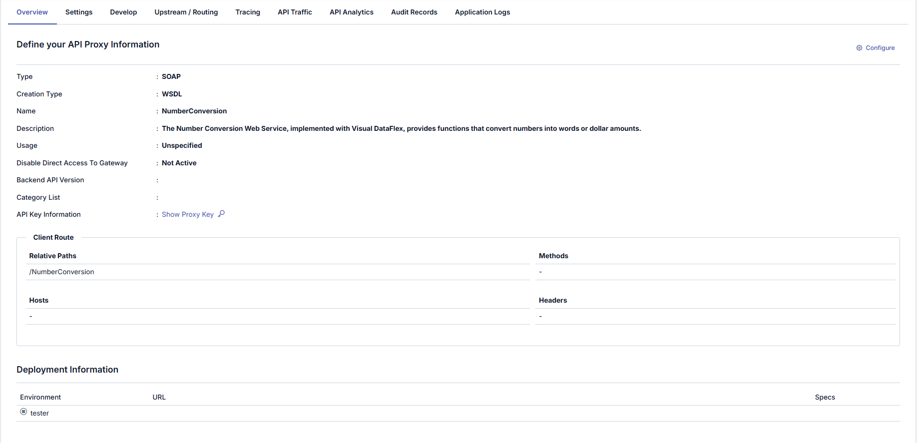 This tab contains general settings related to the selected API Proxy.