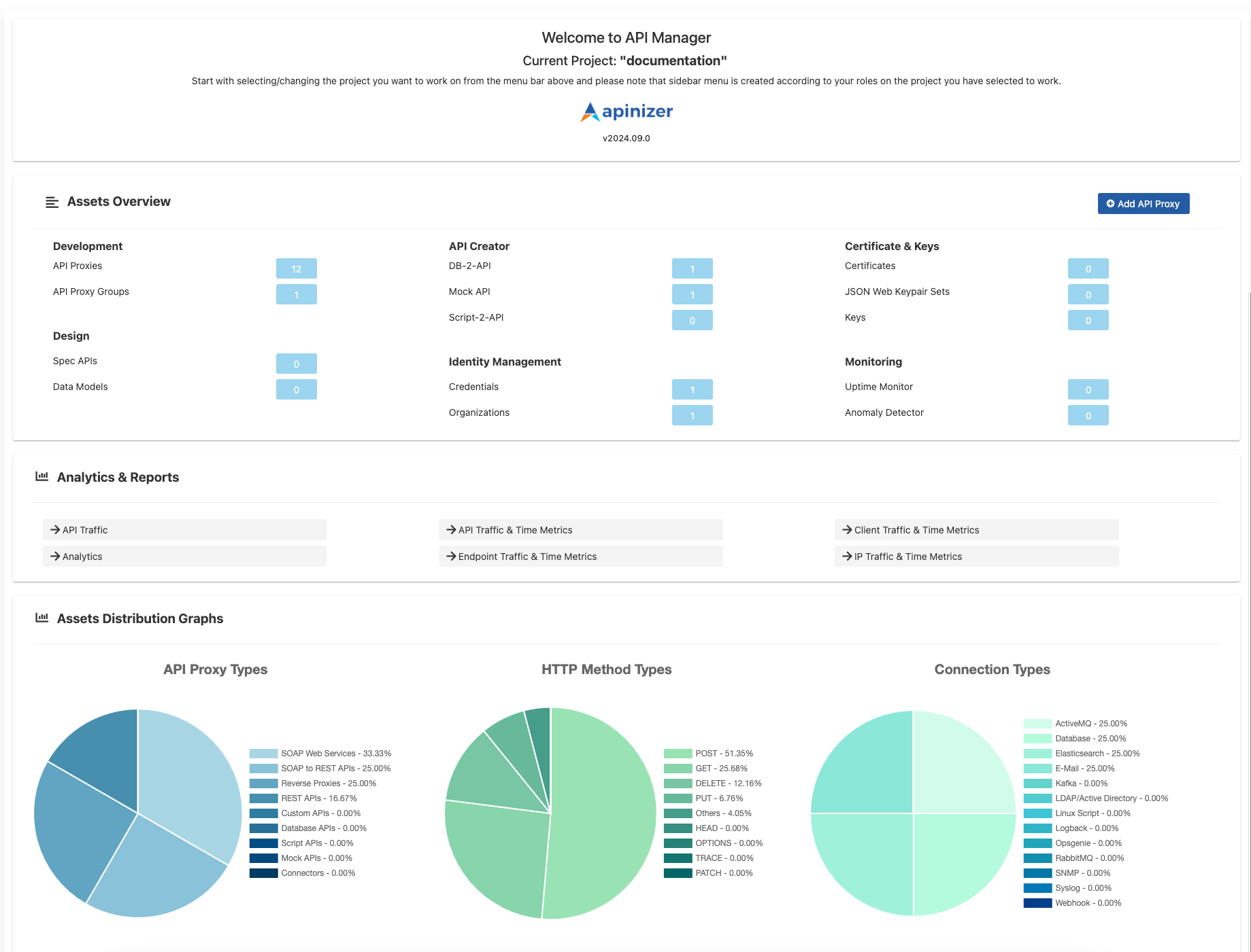 Apinizer Documentation Developer Guide Current: Project Overview Project Overview Overview is designed to get information about the general status in Apinizer Project Console.The image containing the Overview screen is given below: ×