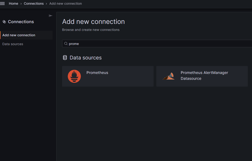 Prometheus is preferred. By clicking “Add new data source” option, Prometheus server URL information is entered and the connection is saved.