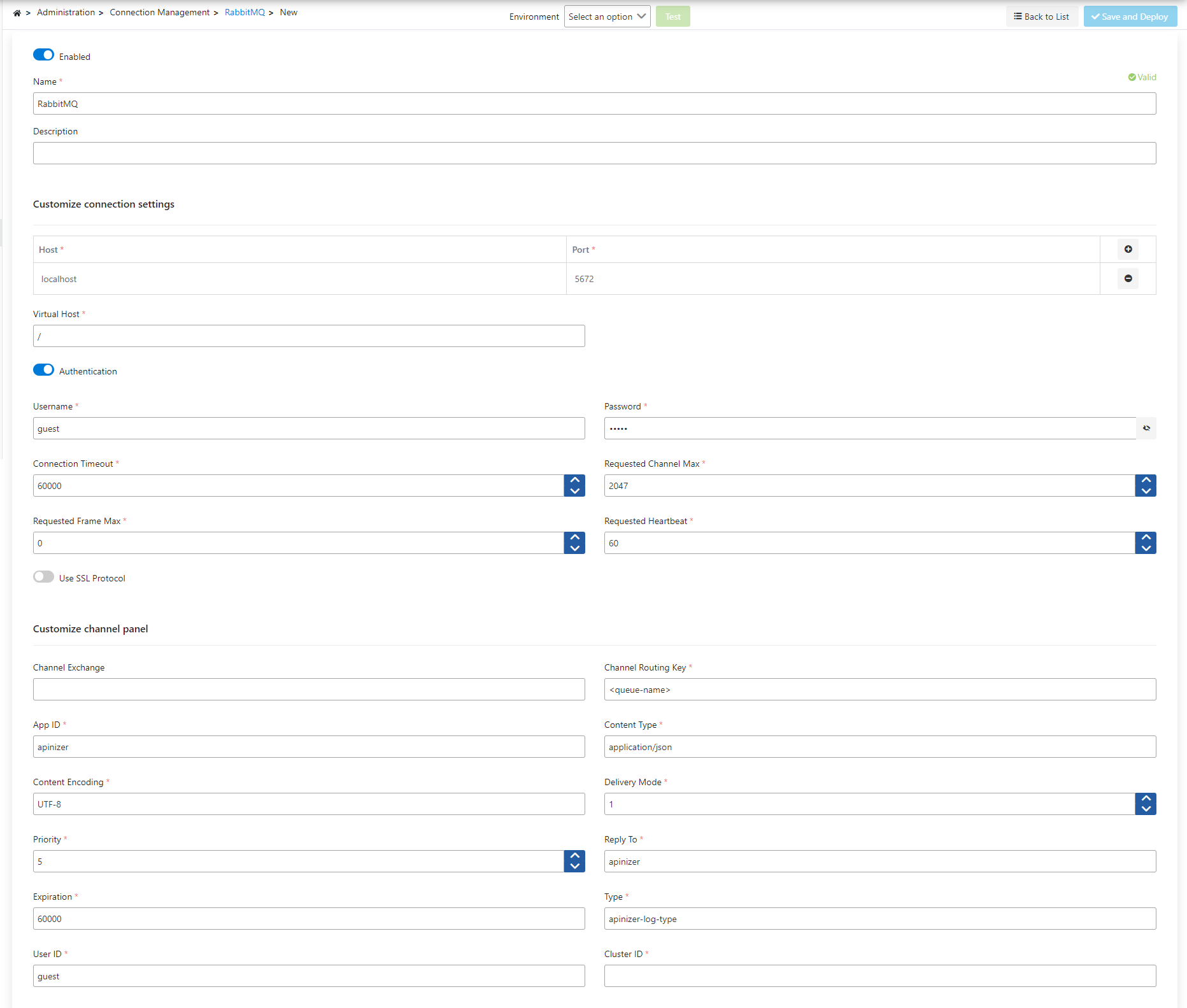 Virtual Host | The virtual host to use when connecting to the broker |