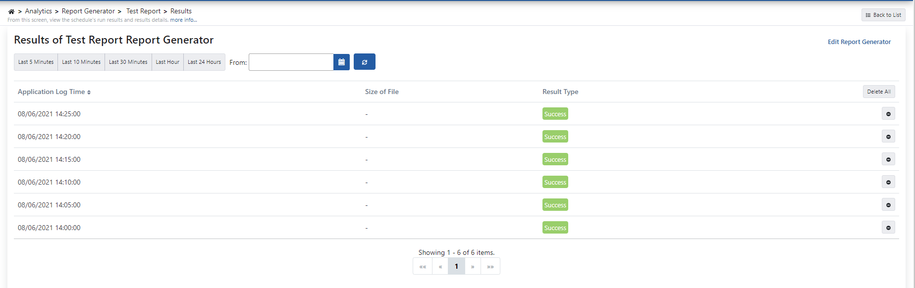 The Report Generator screen generates reports that run queries on the logs at certain times and send the query results to the desired action.
