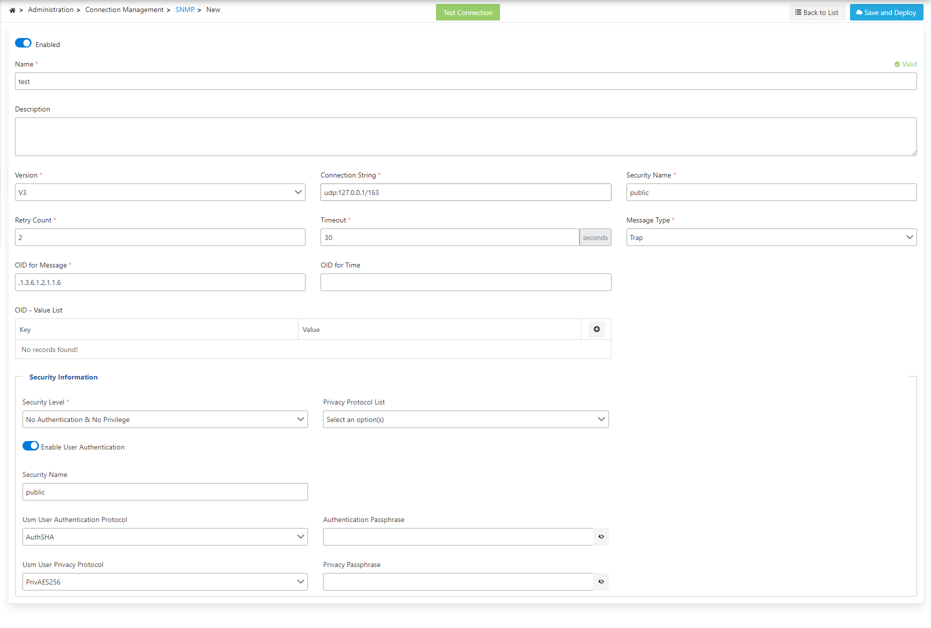 | OID - Value List | It is used to define the required fixed OID-Value pairs to be sent with the message. |