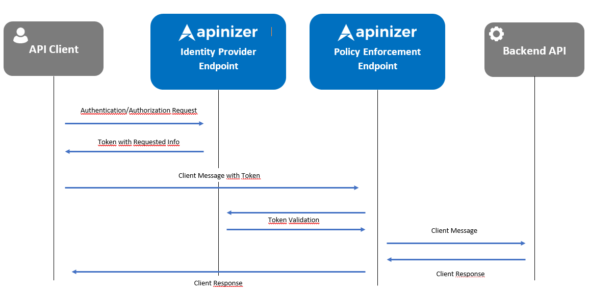 Clients can generate tokens using Apinizer's token generator service with their credentials. By sending the generated tokens in the message, they can provide authentication and authorization through these tokens instead of their own credentials.