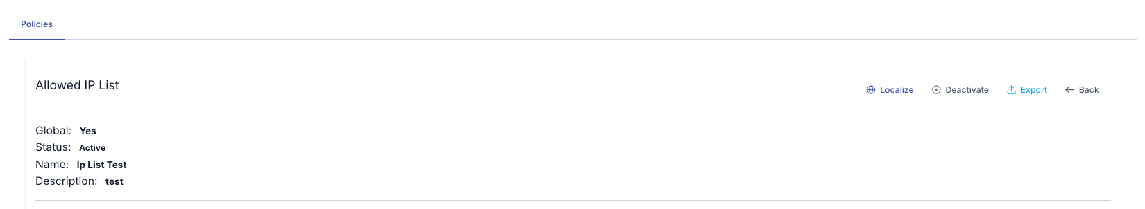 Policy export, import, activate, and deactivate operations can also be performed from these screens.