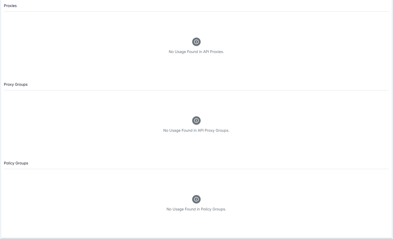 Used in API Proxy Groups Panel: This section displays the list of API Proxy groups that use the policy.