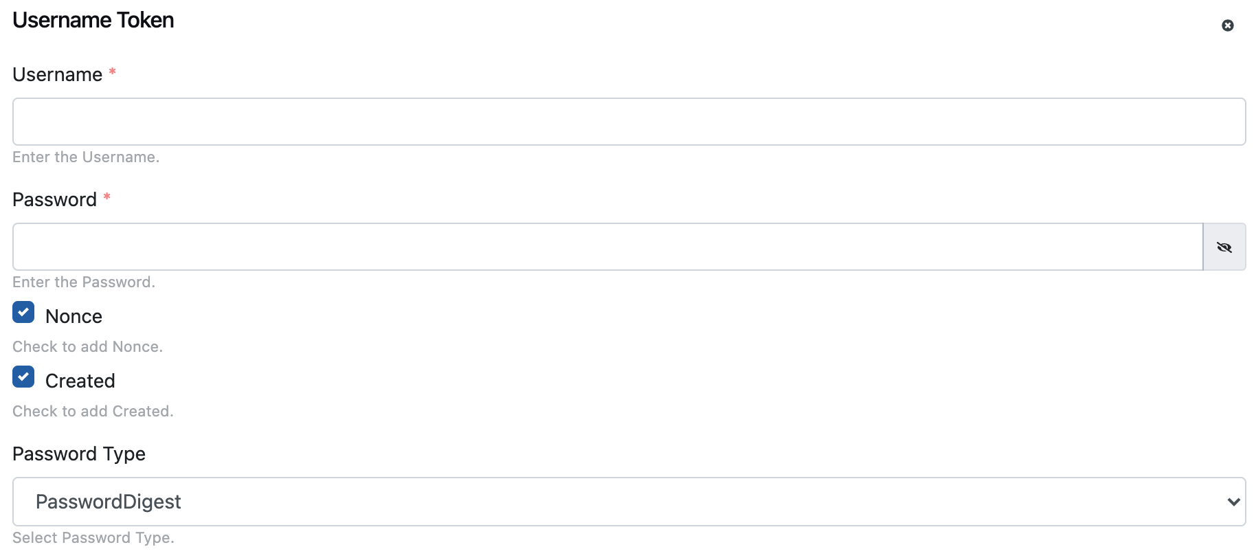If this field is checked, created information is generated and added to the WS-Security UsernameToken element.