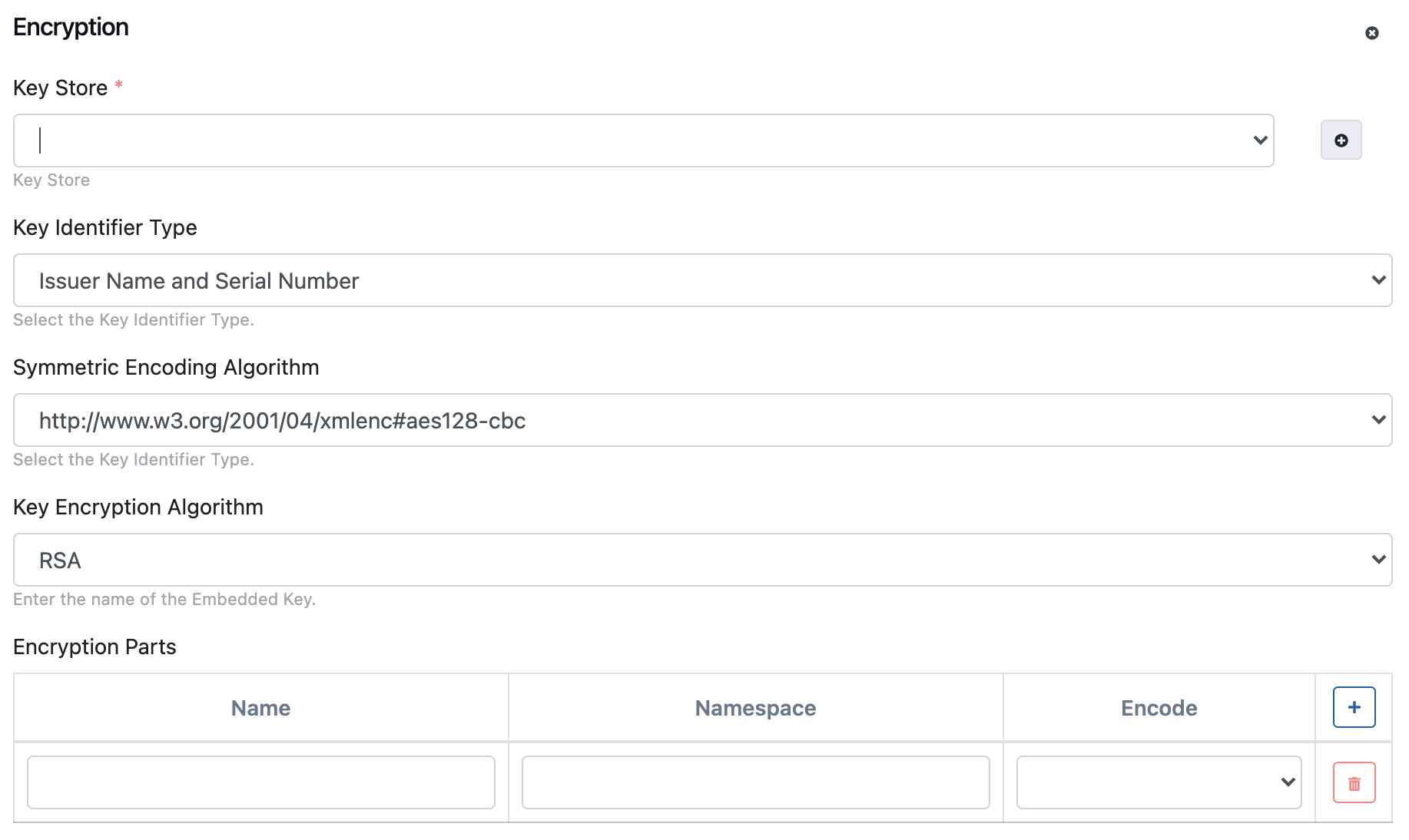 The fields used for encryption configuration are shown in the table below.